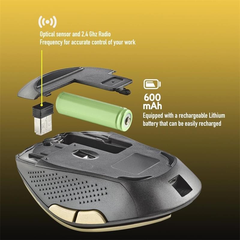 Cuenta con sensor óptico y RF de 2,4 Ghz.